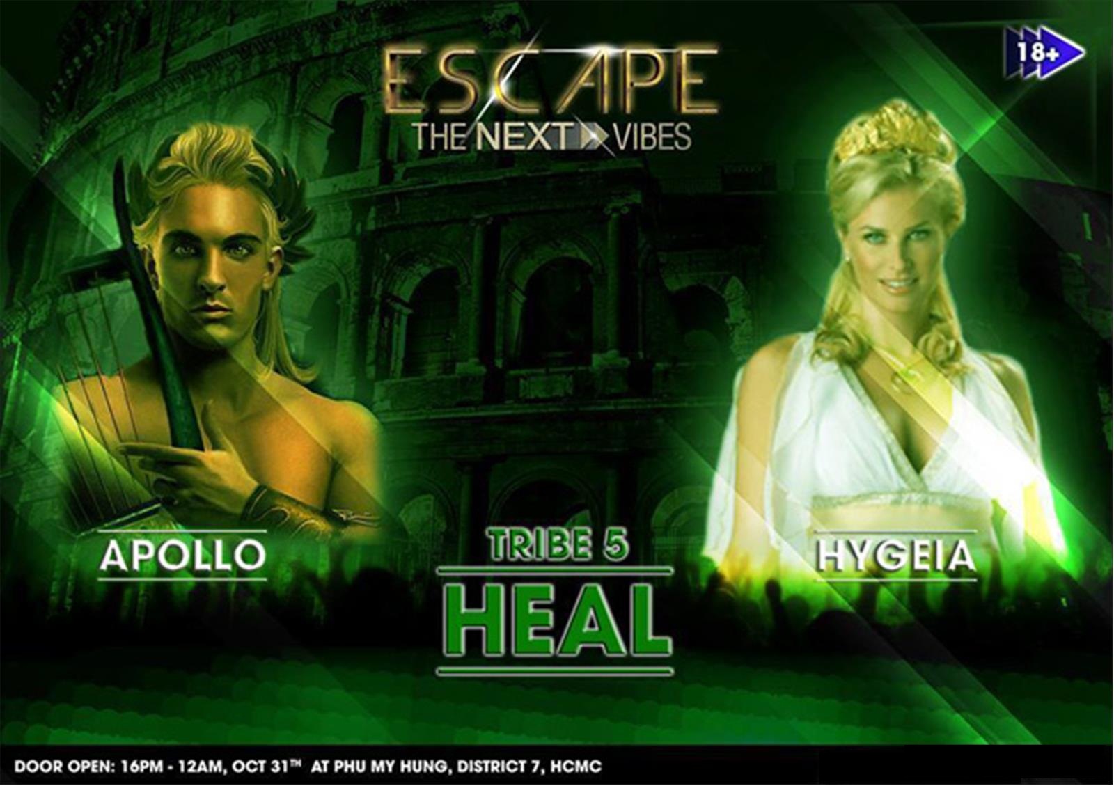 - Lần đầu tiên 12 vị thần Hy Lạp với 6 nhóm tính cách đặc trưng chia thành 6 bộ lạc sẽ xuất hiện tại Escape Halloween 2014.